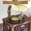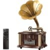 - Solid wood exquisite workmanship, Roman style carved columns, more noble temperament.The record player is equipped with an elegant gramophone phonograph horn that can become the center-piece and add flare to any room in the house