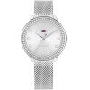 - Materiales de calidad: caja de acero inoxidable Tommy Hilfiger para mujer con cristales, esfera metálica plateada con índice, pulsera de malla de acero inoxidable.