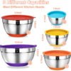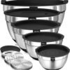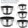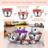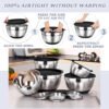 - Cuencos de anidación y aptos para lavavajillas: estos tazones de cocina se pueden anidar juntos y ofrecer un almacenamiento eficiente en espacios ordenados armarios de cocina. El interior de espejo hace que la limpieza sea muy fácil. Este juego de cuencos para mezclar también es apto para lavavajillas, simplemente colócalo en el lavavajillas después de su uso, y obtendrás un nuevo juego de tazones. Pero preste atención a que es mejor lavar las tapas a mano, ya que el calor del lavavajillas puede deformarlas