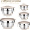 - Acero inoxidable de alta calidad y regalos ideales. Este juego de cuencos tiene una superficie interior espejada y un exterior de acabado cepillado para un aspecto elegante. Exterior con acabado mate que garantiza resistencia a las abolladuras y al óxido. El acero inoxidable de grado alimenticio no se corroe ni produce manchas después de un largo tiempo de uso. Ten en cuenta que debes secar el interior con un paño para evitar la corrosión del agua restante después de cada limpieza. El aspecto elegante y la práctica composición de los accesorios son la mejor opción para regalos para el nuevo hogar, regalos de Acción de Gracias y regalos de Navidad de Chris
