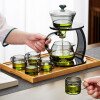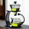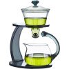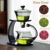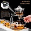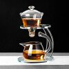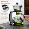 Unbreakable Juego de té de vidrio – Tetera de vidrio de goteo Lazy Kungfu, tetera giratoria de goteo semiautomática de 14.1 onzas líquidas con infusor, hervidor de borosilicato alto para casa de té