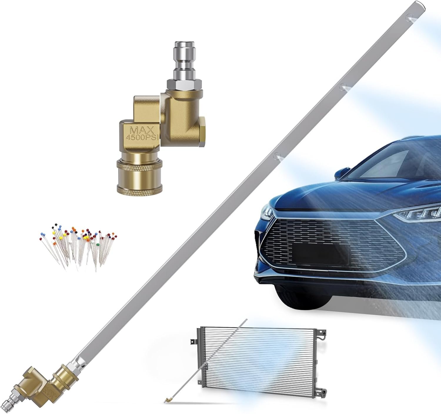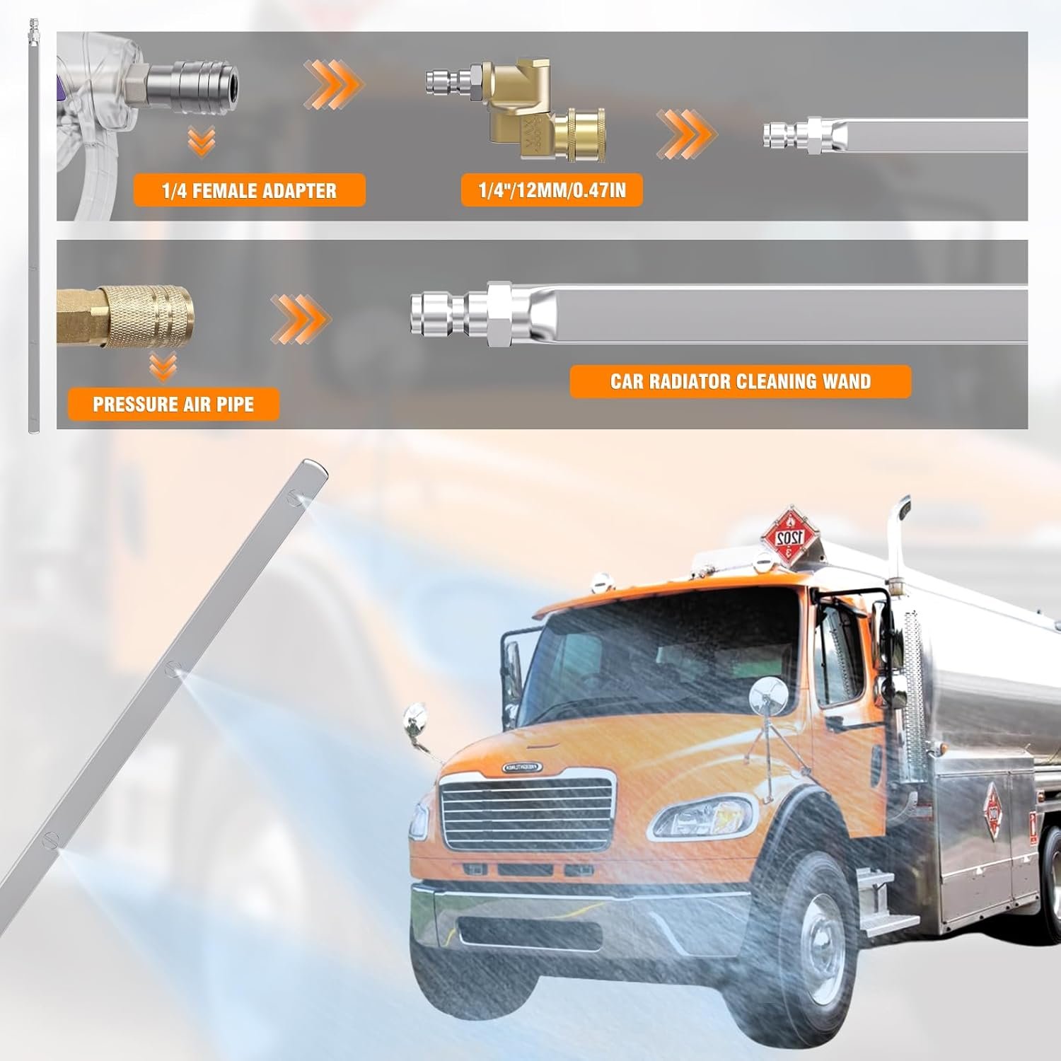 - Conexión rápida universal y amplia compatibilidad: cuenta con un enchufe estándar de conexión rápida de 1/4 pulgadas para una fijación instantánea a la mayoría de pistolas de lavado a presión. Esta herramienta universal de limpieza de radiador es ideal para el mantenimiento profesional de la flota en vehículos, desde sedanes hasta camiones ligeros, asegurando que su motor funcione más fresco y eficientemente.