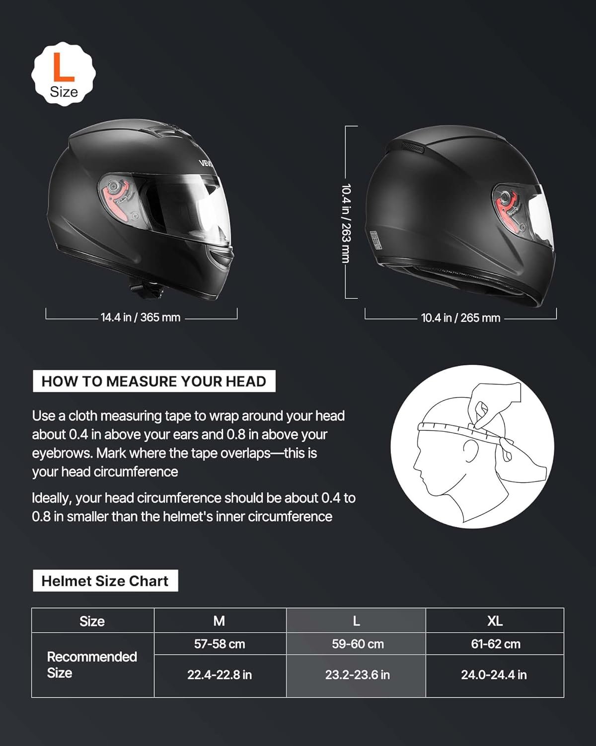 - Tamaño del casco: 23.2-23.6 in/59-60 cm