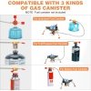 - 【Compatible with 3 Kinds of Gas Canister】Our propane camp stove is compatible with isobutane, butane and 1lb propane fuel canister. You can choose the appropriate adapter according to the needs. In addition, the hose of the camping stove is lengthened to 50cm, which is longer than other stove with only 30cm hose. The distance between the stove and the gas cylinder is farther and safer when using.