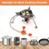 - 【Compact and Easy to Carry】The camping stove is only 20.39oz, Light weight and small in size, does not take up much space, easy to carry and store. Great for backpacking, tent camping, and other emergencies. It’s a perfect camping stove and an economical choice for camping, trail cooking.