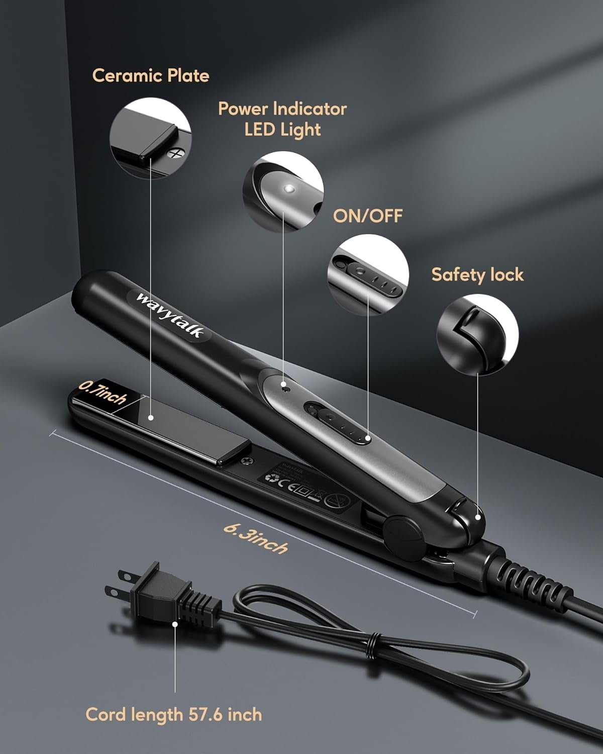 - [Lightweight and portable] The Plate size of mini hair straightener is 0.7 inches, the length of the body is 6.7 inches, and the weight is only 0.35 pounds. All of these features combine to make it ideal for travel and an essential for any beauty regime. Its small size and lightweight makes it ideal for storage and it can fit in any storage compartment or bag.