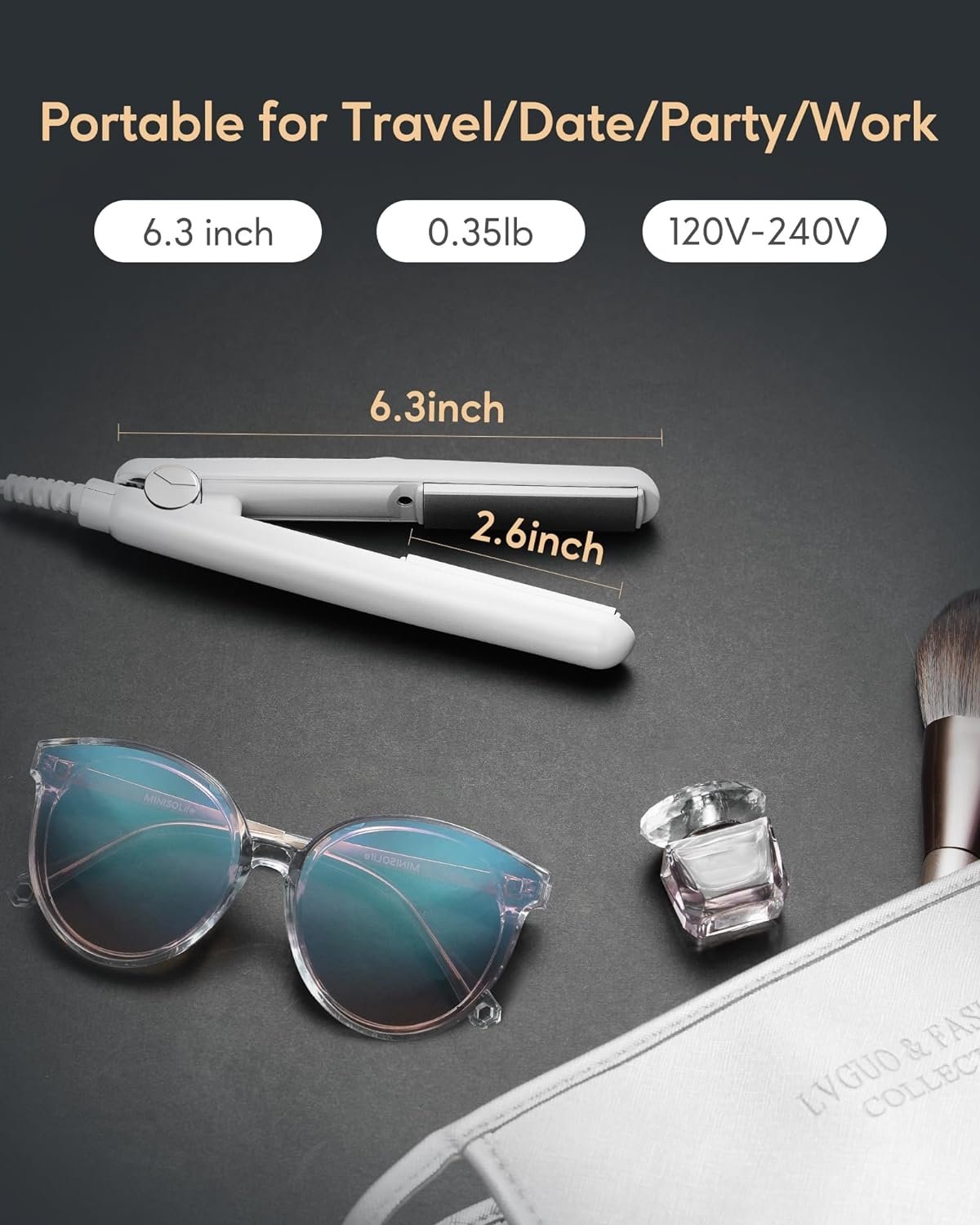 - [Dual voltage for worldwide use] This mini flat iron offers dual voltage that is compatible with 120V-240V, so it can be used anywhere in the world. This smart flat iron provides professional styling options anytime anywhere.