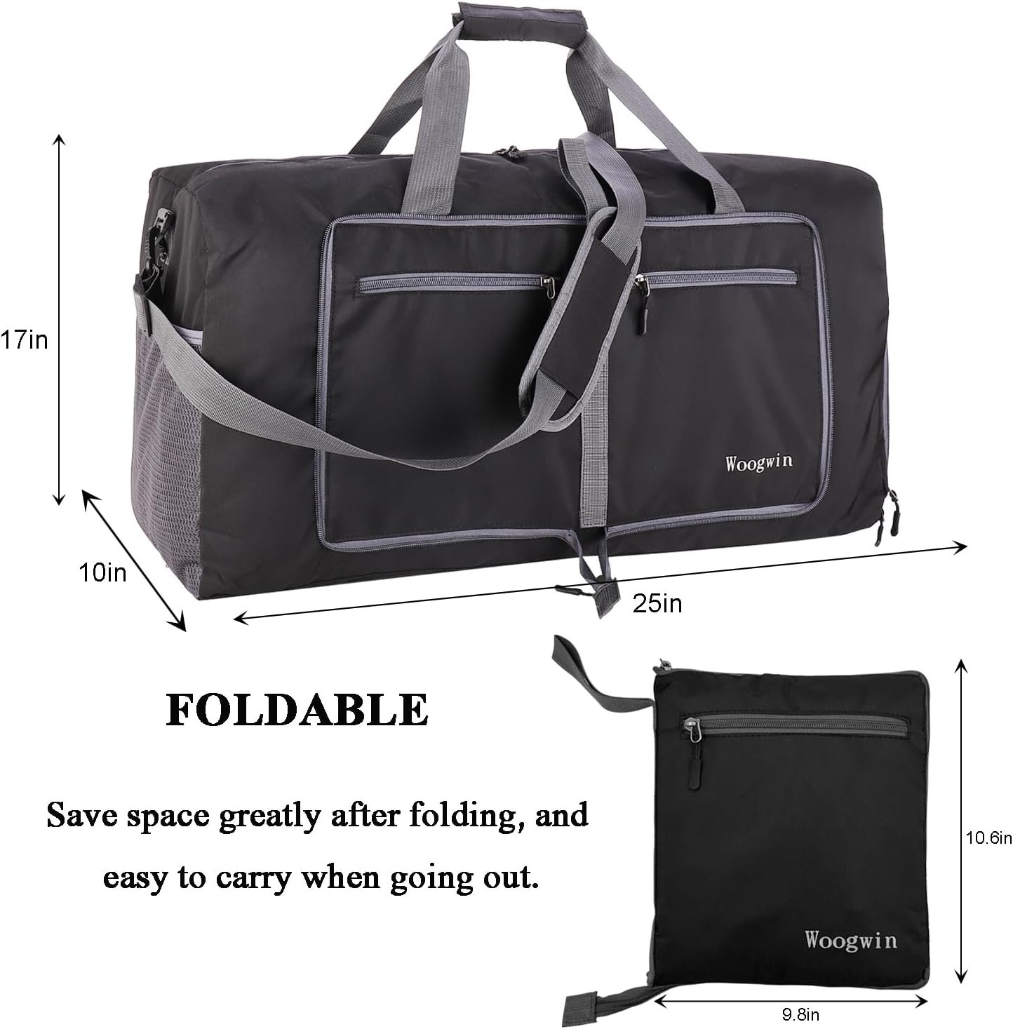 - Capacidad extra grande y plegable: la bolsa de lona grande de 10 x 17 x 25 pulgadas te servirá bien como una bolsa de equipaje de mano, bolsa de gimnasio como una bolsa de lavandería de viaje. También se puede plegar a una bolsa pequeña de 9.8 x 10.6 pulgadas con bolsillo con cremallera en cada lado, por lo que es fácil de almacenar y transportar