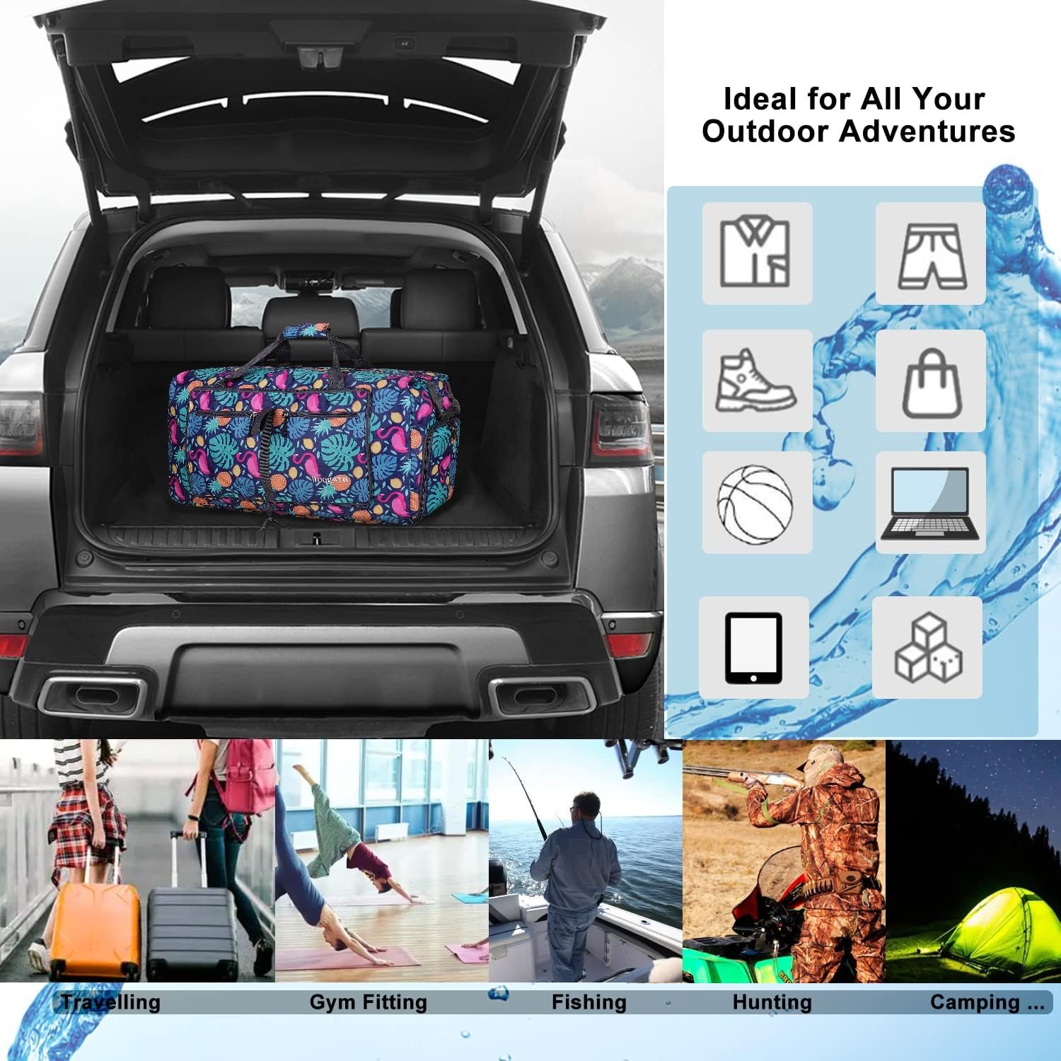 - Ocasiones: ideal para usar como un equipaje principal ligero, una compra adicional, una bolsa de recuerdos, almacenamiento de equipo deportivo, una bolsa extra en caso de que en el aeropuerto, durante la noche o bolsa de fin de semana. Buen compañero para viajes, playa, compras, gimnasio, senderismo, camping, fútbol, baloncesto, hockey, entrenamientos, ciclismo, natación, mudanzas de casa y viajes.
