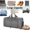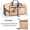 - Capacidad extra grande y plegable: la bolsa de lona grande de 10 x 17 x 25 pulgadas te servirá bien como una bolsa de equipaje de mano, bolsa de gimnasio como una bolsa de lavandería de viaje. También se puede plegar a una bolsa pequeña de 9.8 x 10.6 pulgadas con bolsillo con cremallera en cada lado, por lo que es fácil de almacenar y transportar