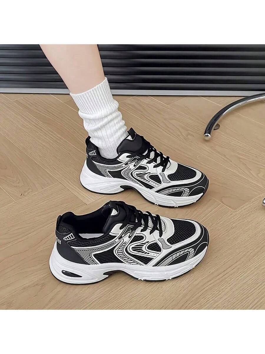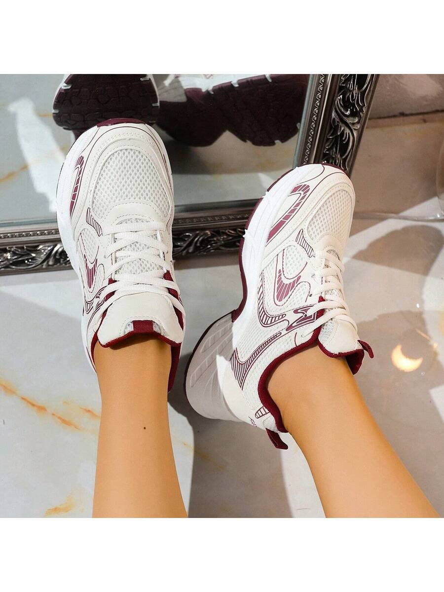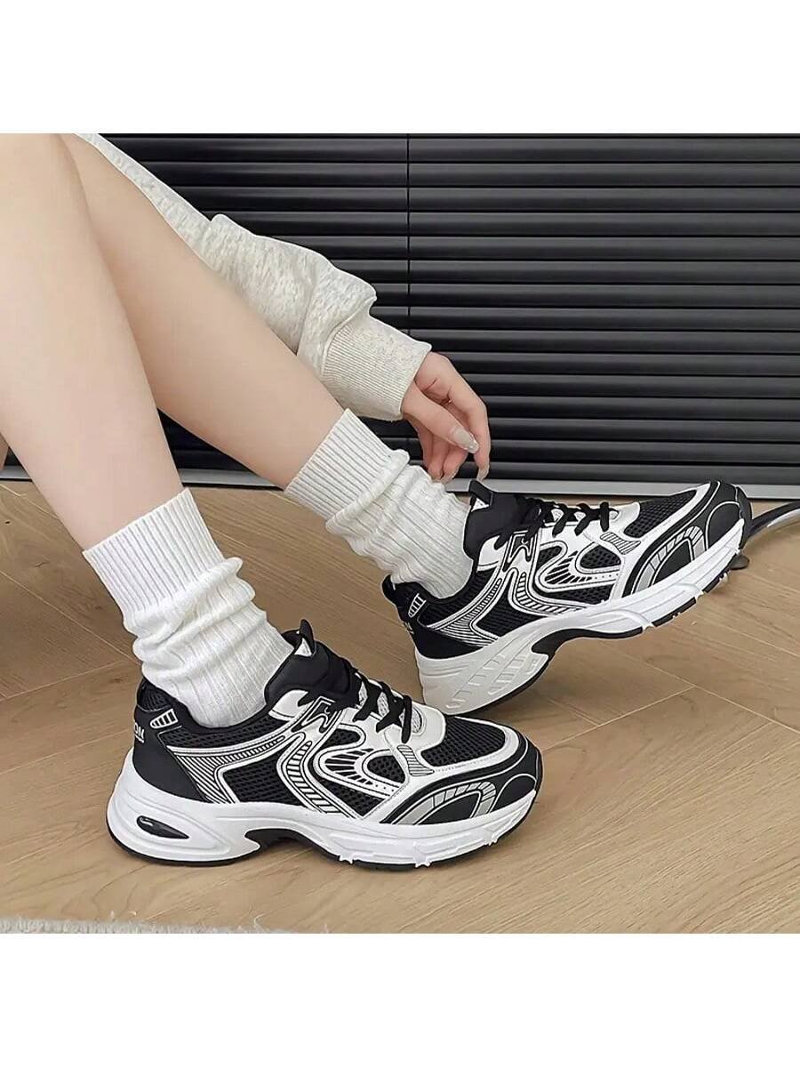 Zapatillas de deporte informales con plataforma y cordones para mujer, con suela elevada, de malla, transpirables, suaves, cómodas y versátiles, ligeras y versátiles, para uso diario en exteriores y en las cuatro estaciones.