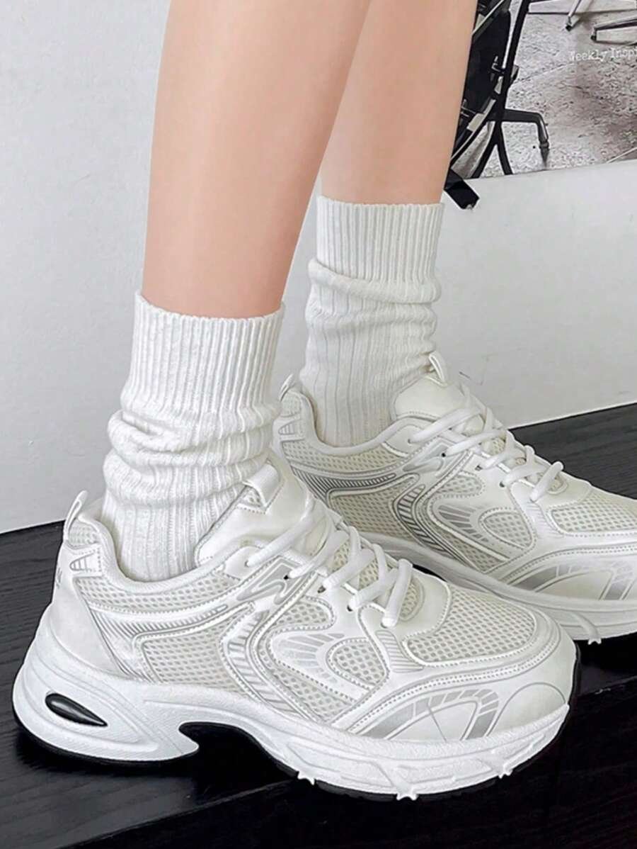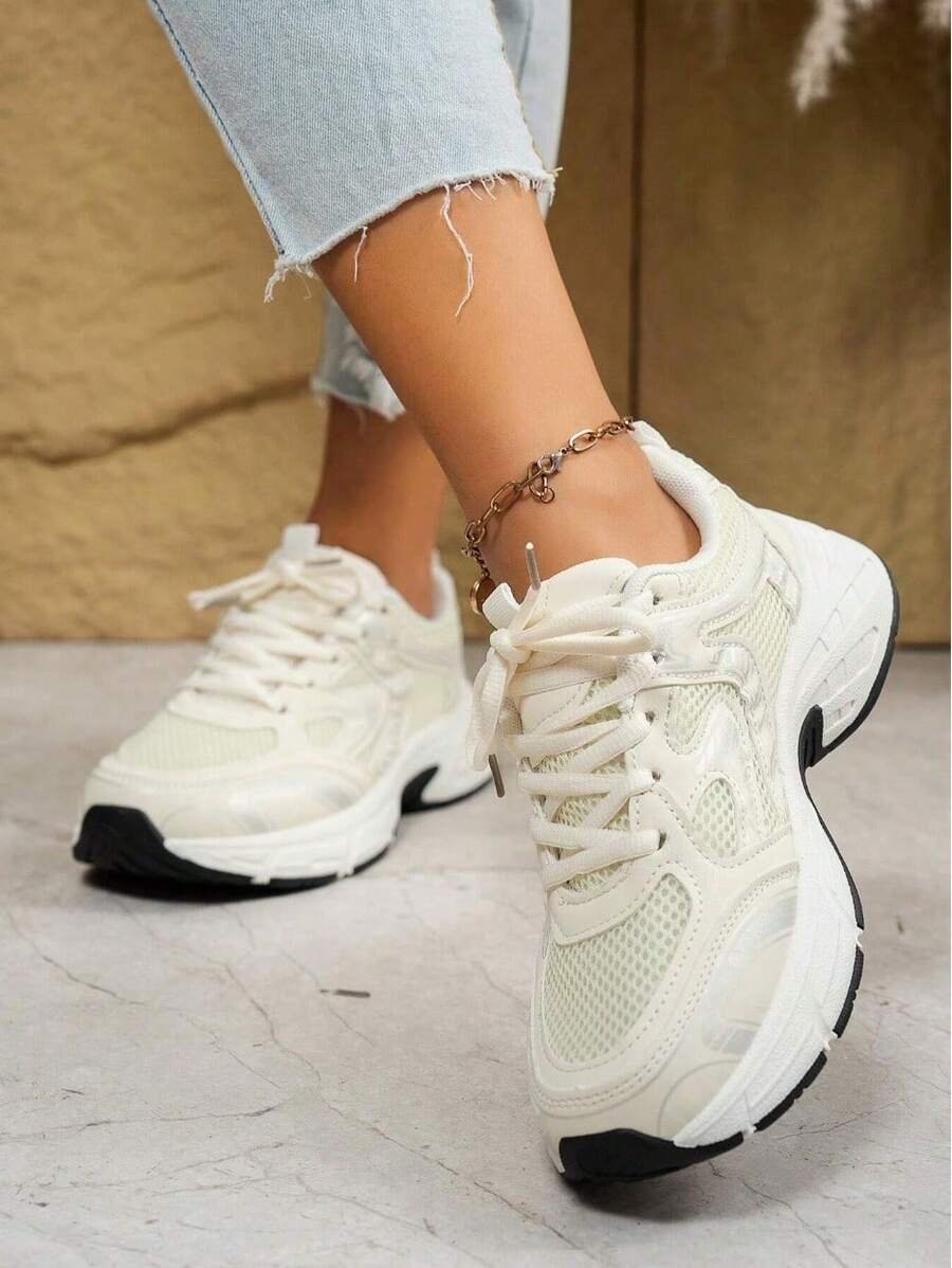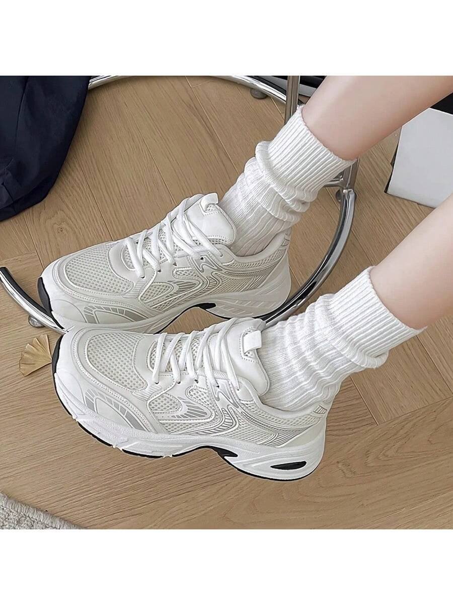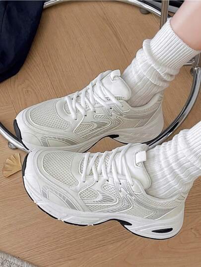 Zapatillas de deporte informales con plataforma y cordones para mujer, con suela elevada, de malla, transpirables, suaves, cómodas y versátiles, ligeras y versátiles, para uso diario en exteriores y en las cuatro estaciones.