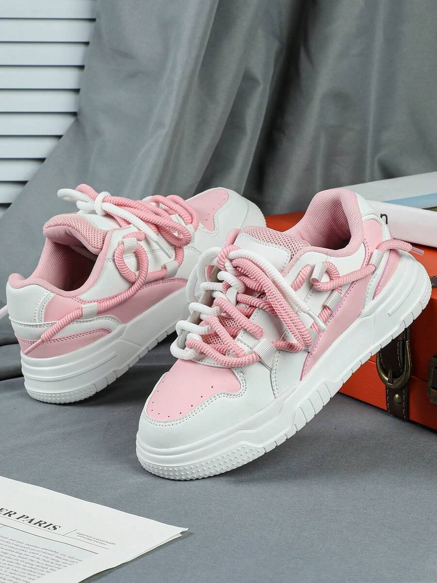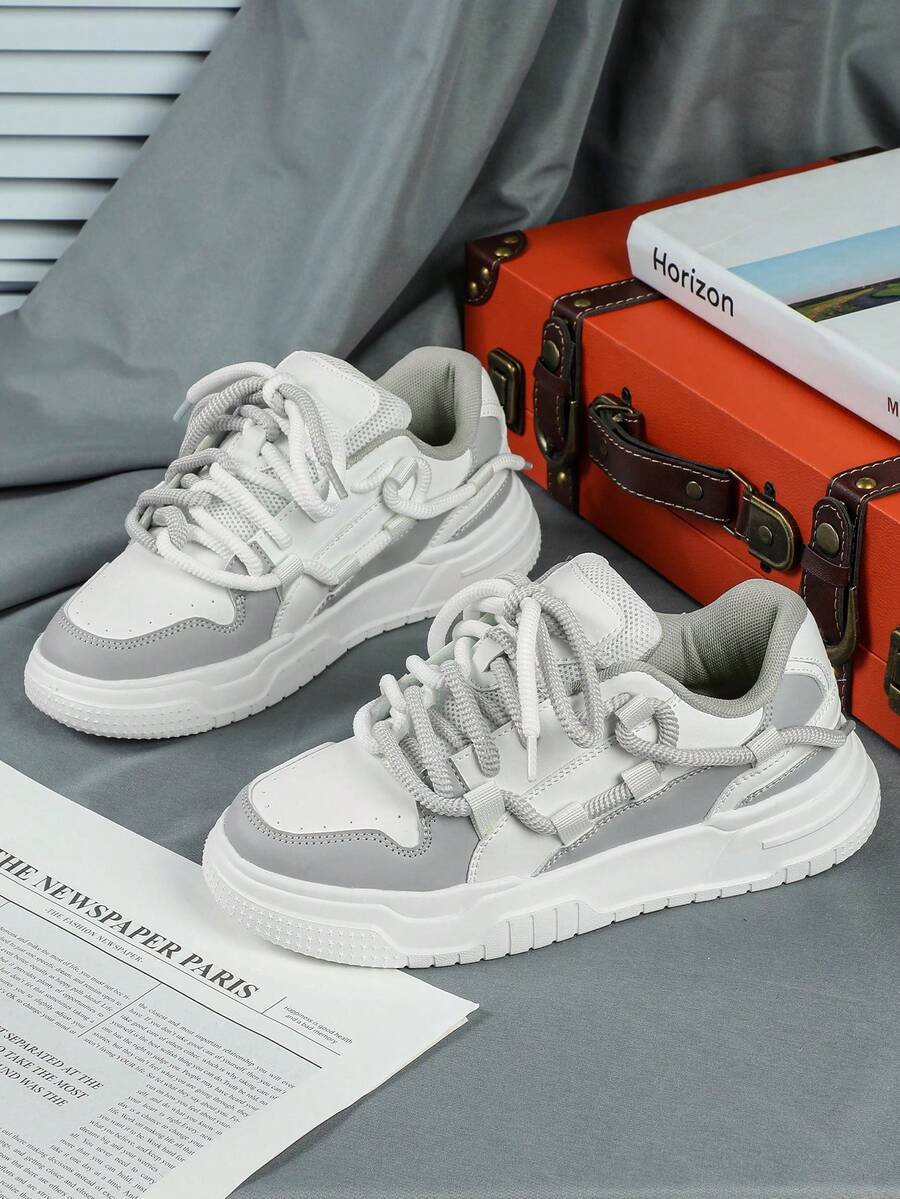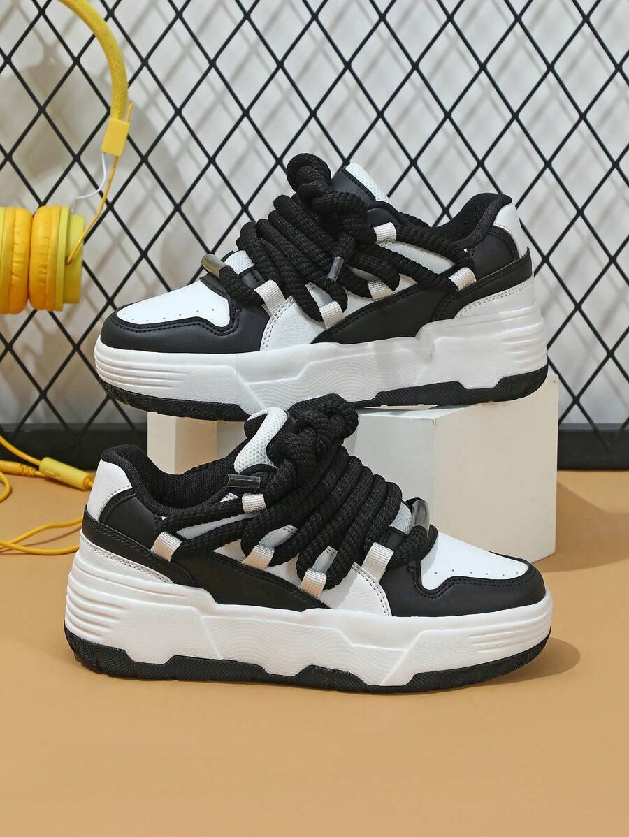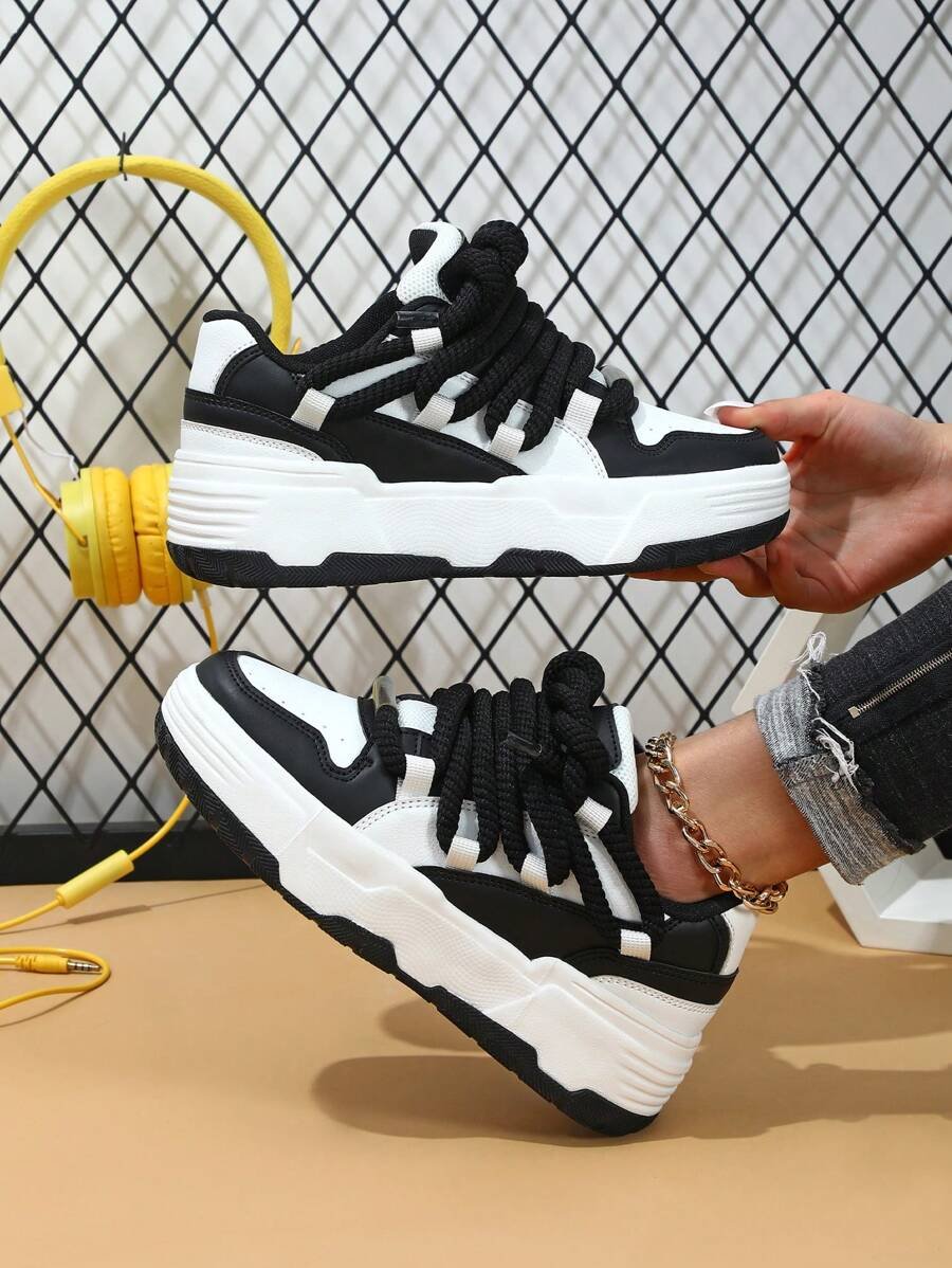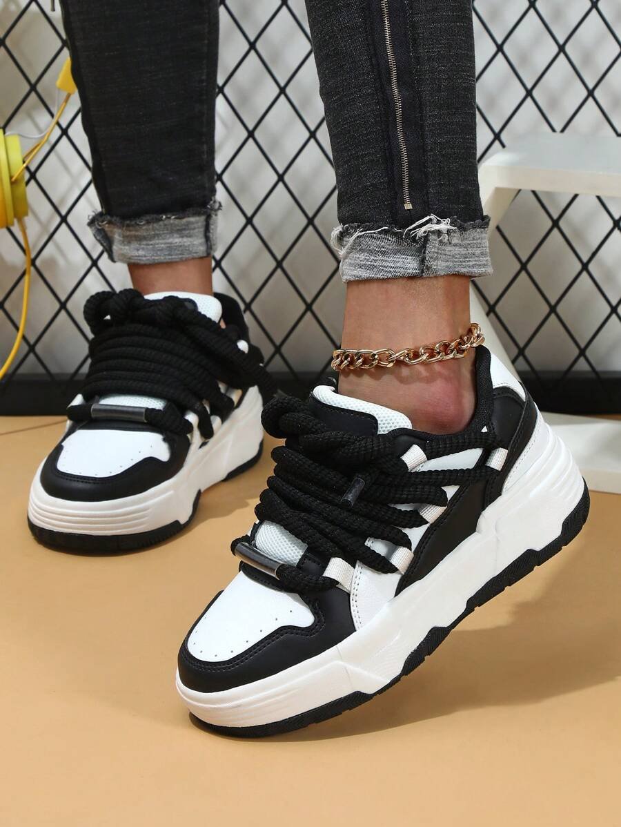 Zapatillas de skate de estilo casual y de moda en negro y blanco, perfectas como regalo para festivales. Diseñadas con cordones anchos para un aspecto genial y único. Adecuadas para el uso diario de las mujeres, vacaciones y actividades deportivas.