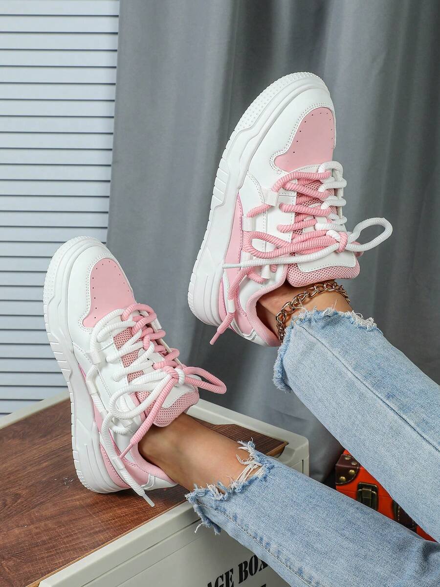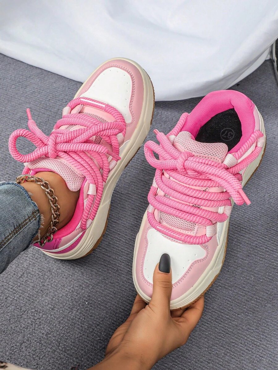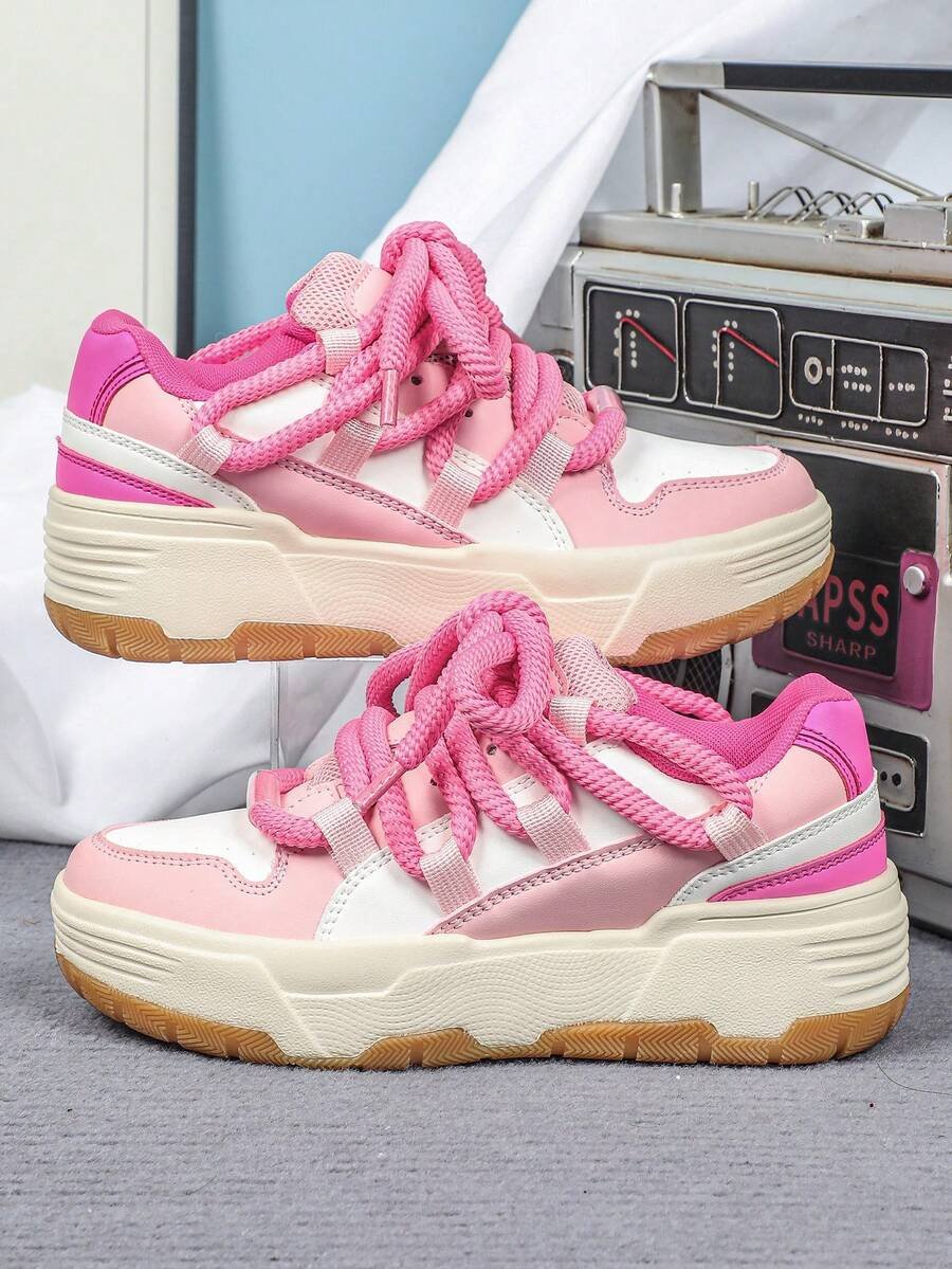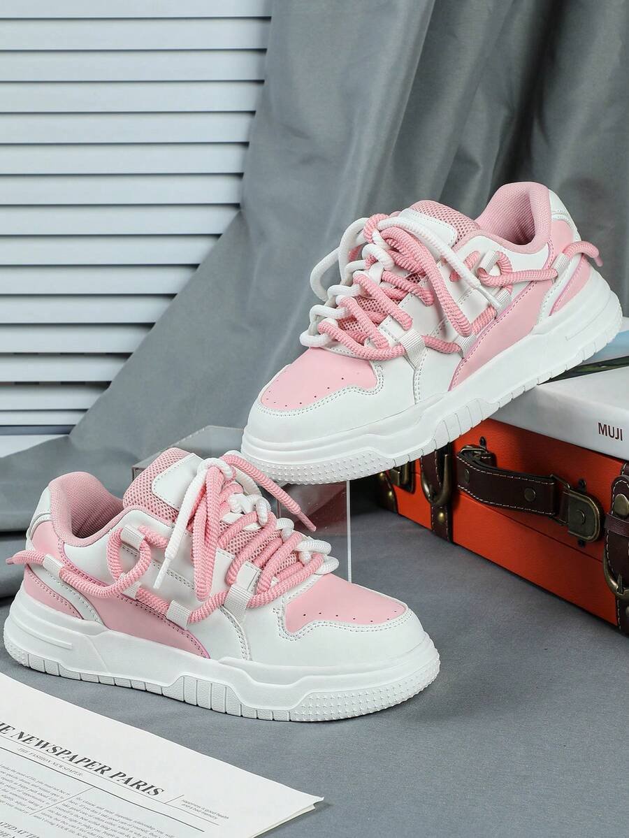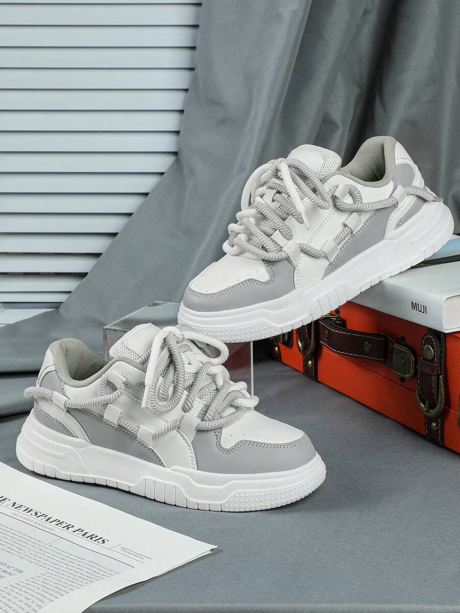 Zapatillas de skate de estilo casual y de moda en negro y blanco, perfectas como regalo para festivales. Diseñadas con cordones anchos para un aspecto genial y único. Adecuadas para el uso diario de las mujeres, vacaciones y actividades deportivas.