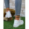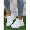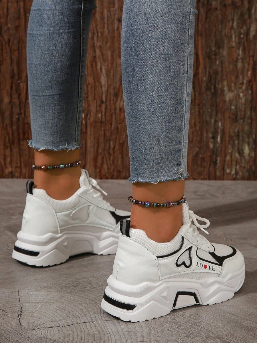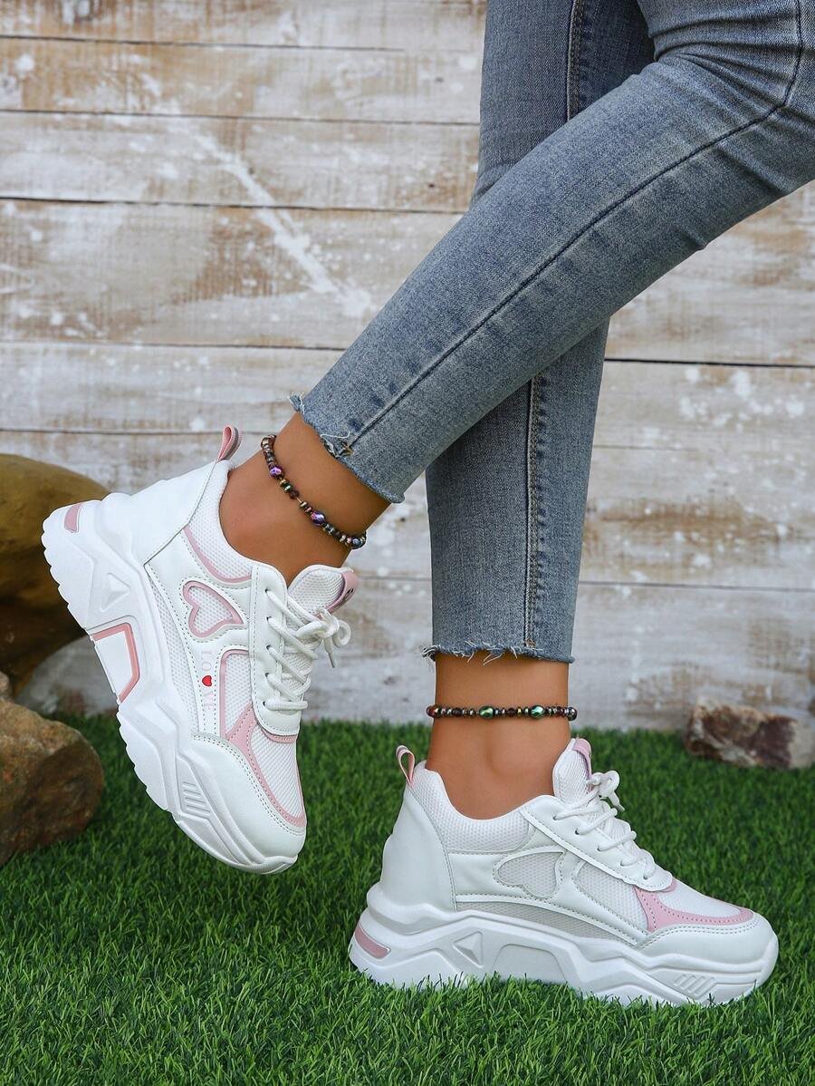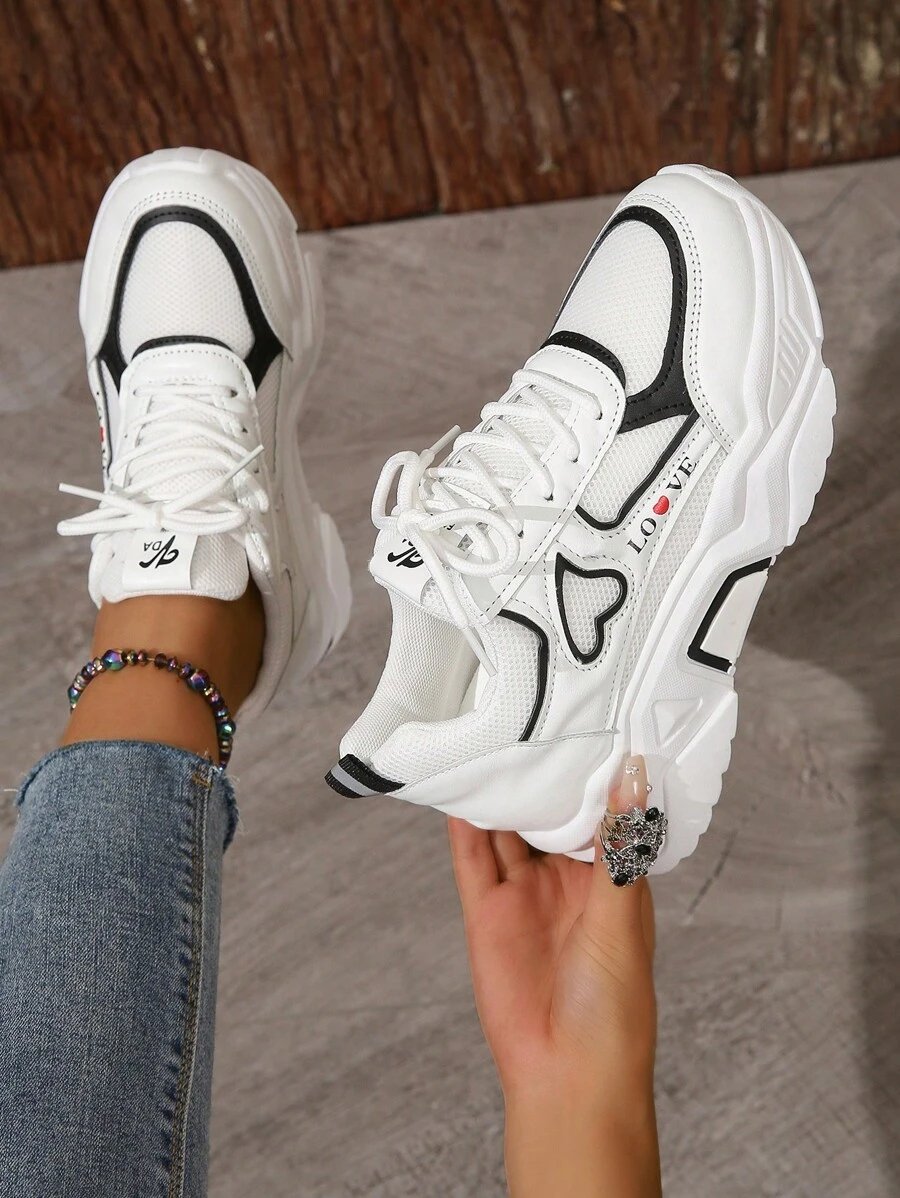 Zapatillas deportivas de cuña con panel de malla de dos tonos y gráfico de letras para mujer, para otoño/invierno. Zapatos deportivos con cordones gruesos para exteriores