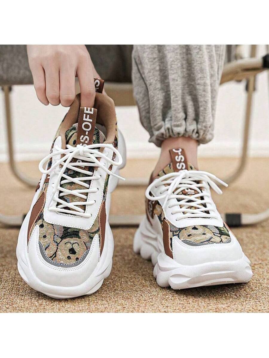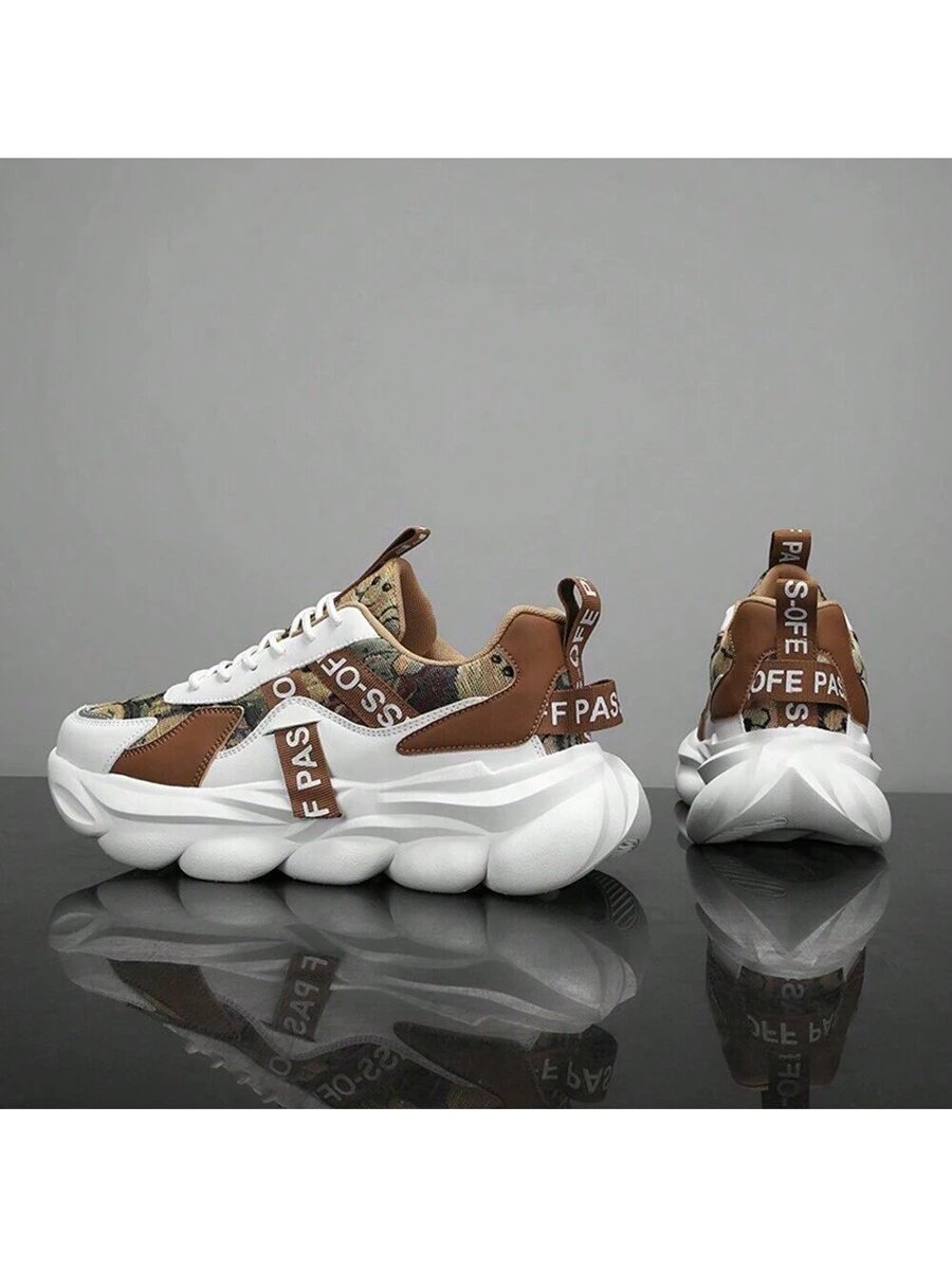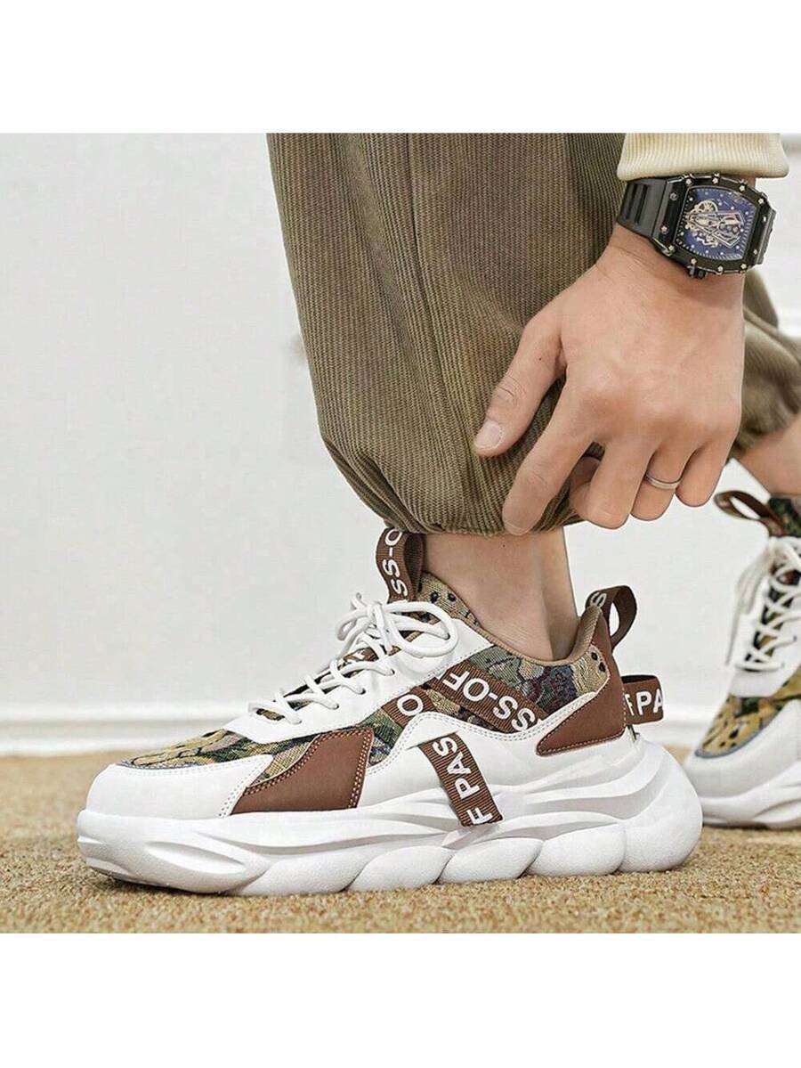 Zapatos deportivos casuales gruesos para hombre con parche de graffiti que aumentan la altura, cordones de adorno, suela gruesa, para correr al aire libre, zapatillas de moda y robustas para el verano