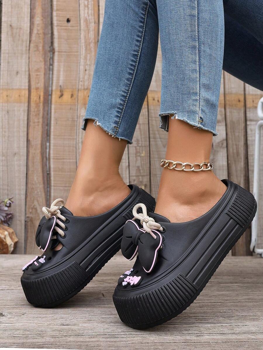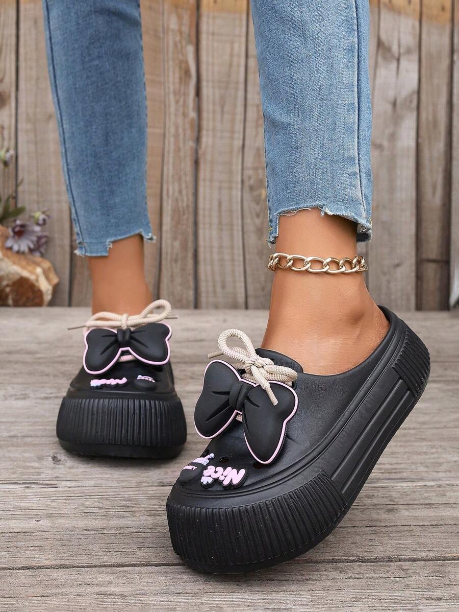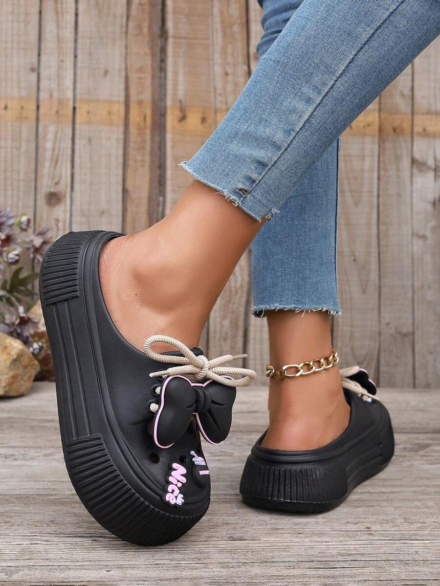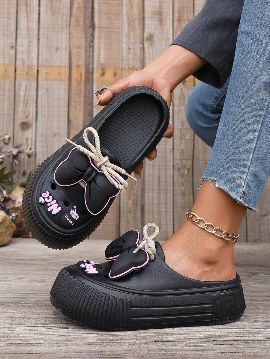ZOSIVC Mulas de verano para mujer con lazo, sandalias de plataforma cómodas con dibujos animados, ligeras zapatillas casuales de playa al aire libre