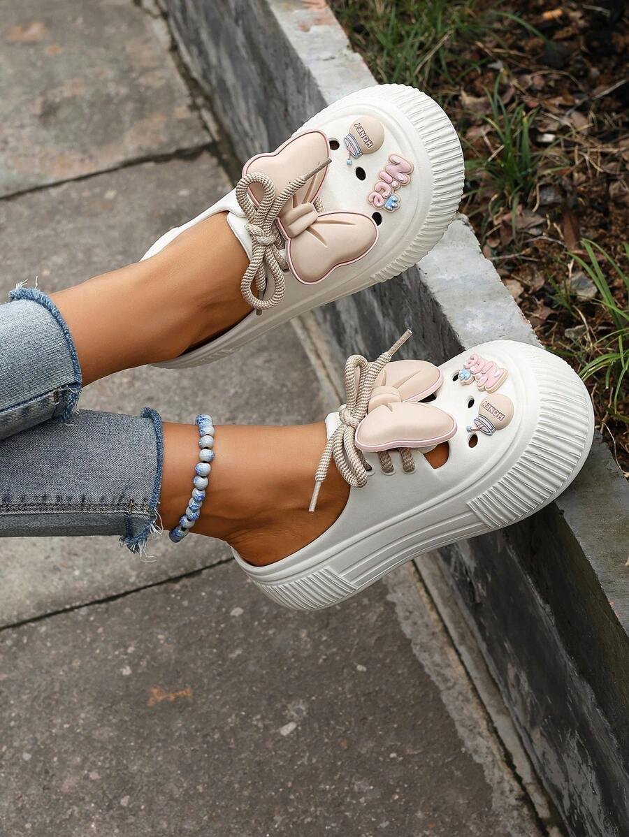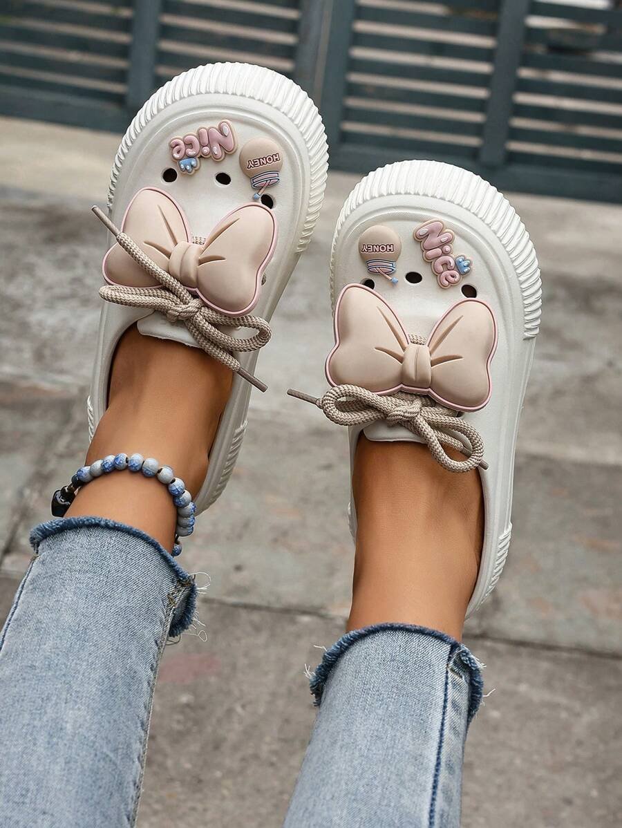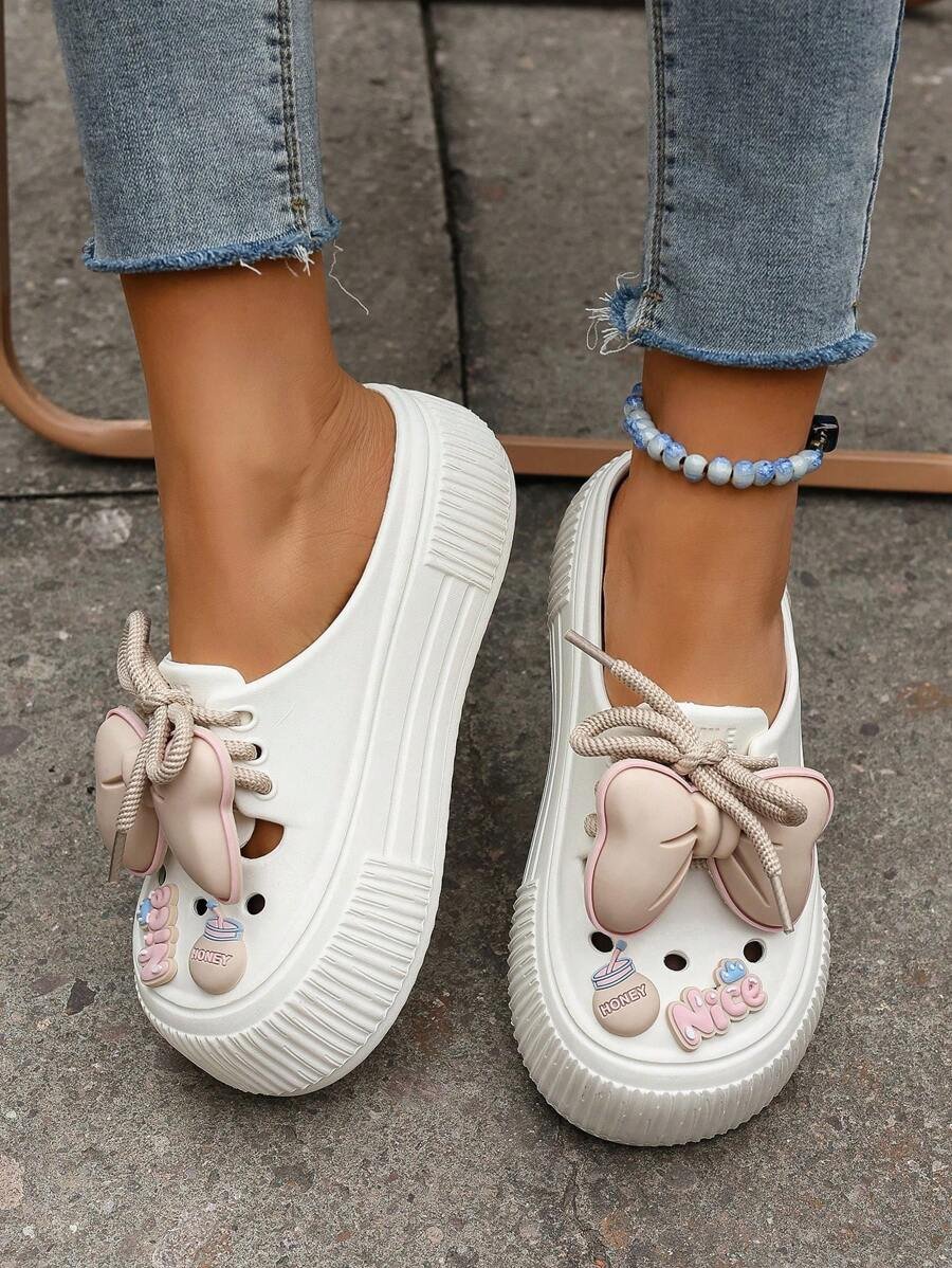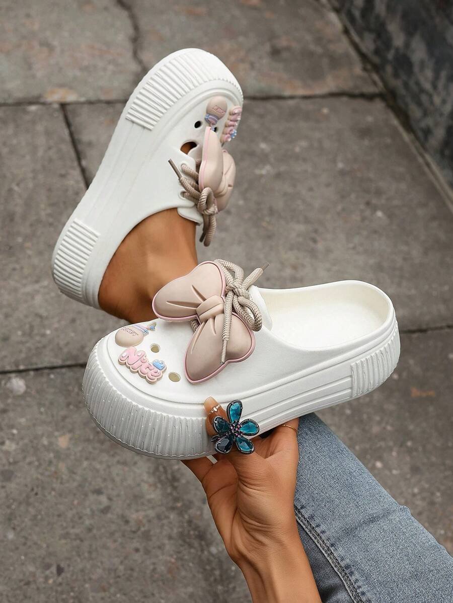 ZOSIVC Mulas de verano para mujer con lazo, sandalias de plataforma cómodas con dibujos animados, ligeras zapatillas casuales de playa al aire libre