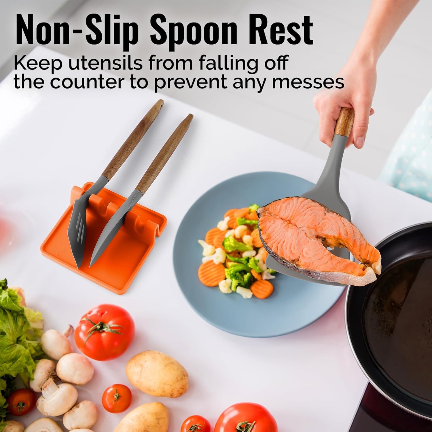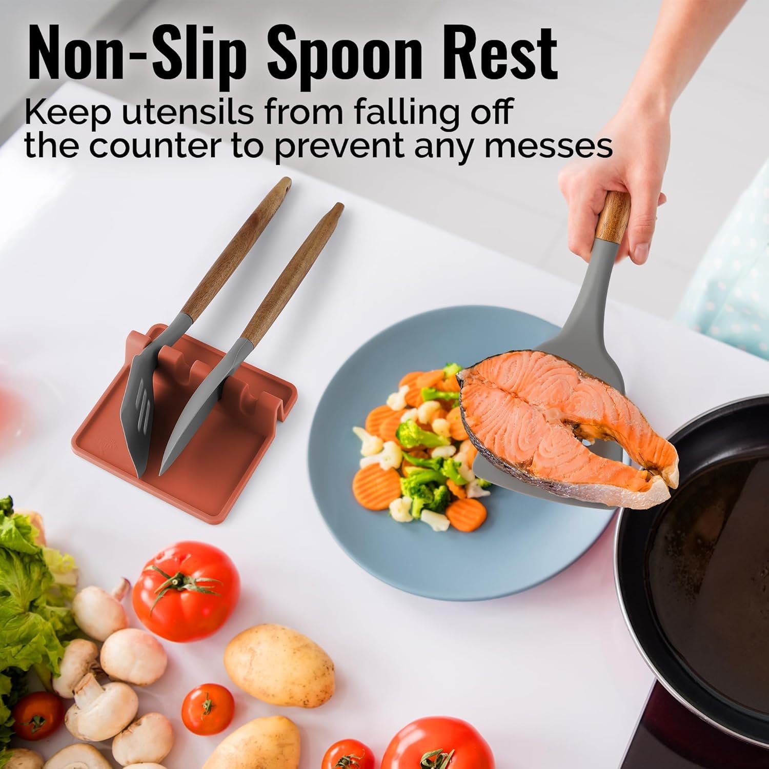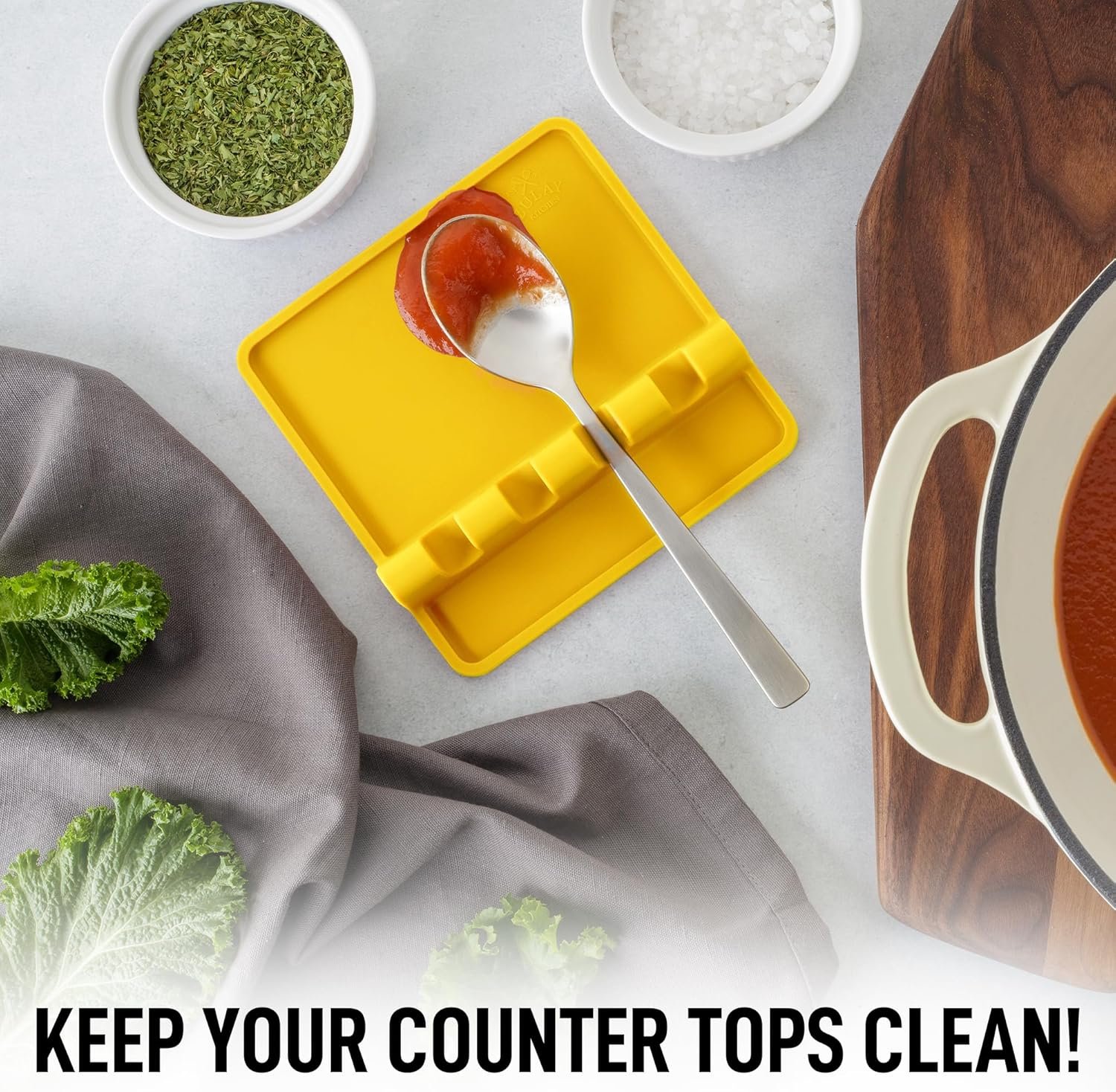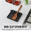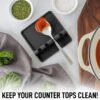 - Mantén tus mesones limpios: ¿Estás cansado de que gotee aceite y salsa sobre las estufas y mesones de cocina mientras cocinas? ¡No digas más! Nuestro reposacucharas cuenta con bordes elevados para atrapar todas las gotas, por lo que es un gran complemento para tus utensilios de cocina y mantener los mesones y estufas limpias. Revoluciona tu experiencia de cocinar, hornear o asar con este bonito reposacucharas cuadrado.