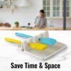 - Añade valor a tu cocina: nuestro soporte para utensilios duradero es asequible y te acompañará durante muchos años en tu cocina. Di adiós a las toallas de papel y cámbialas por este soporte para espátulas para tener el mesón de cocina reluciente. También puede ser una gran opción como regalo para inauguración de la casa. Tus seres queridos definitivamente apreciarán tu atento gesto después de una sesión de cocinar sin ensuciar.