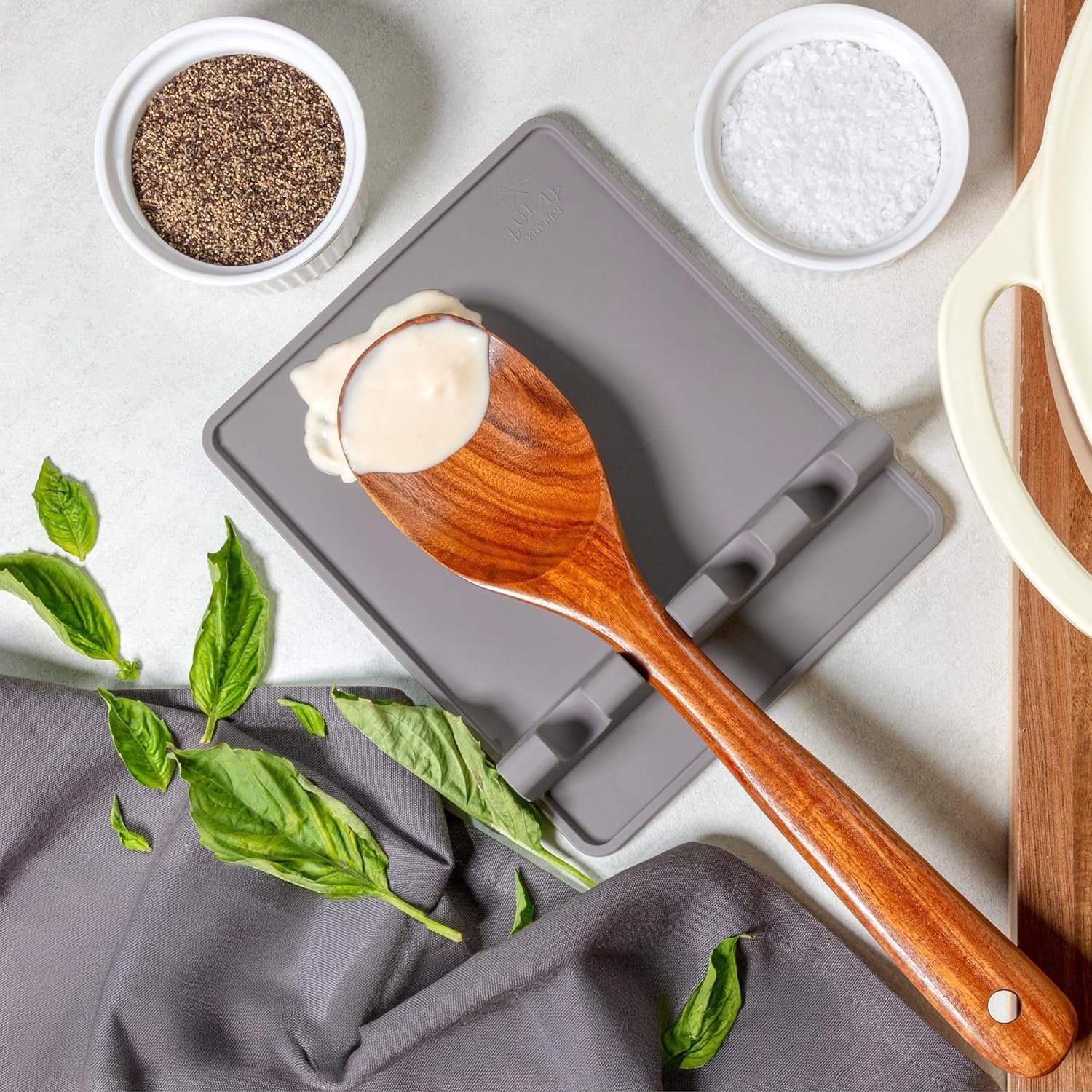 Zulay – Soporte de silicona con bandeja antigoteo para múltiples utensilios de cocina, reposacucharas resistente al calor y sin BPA